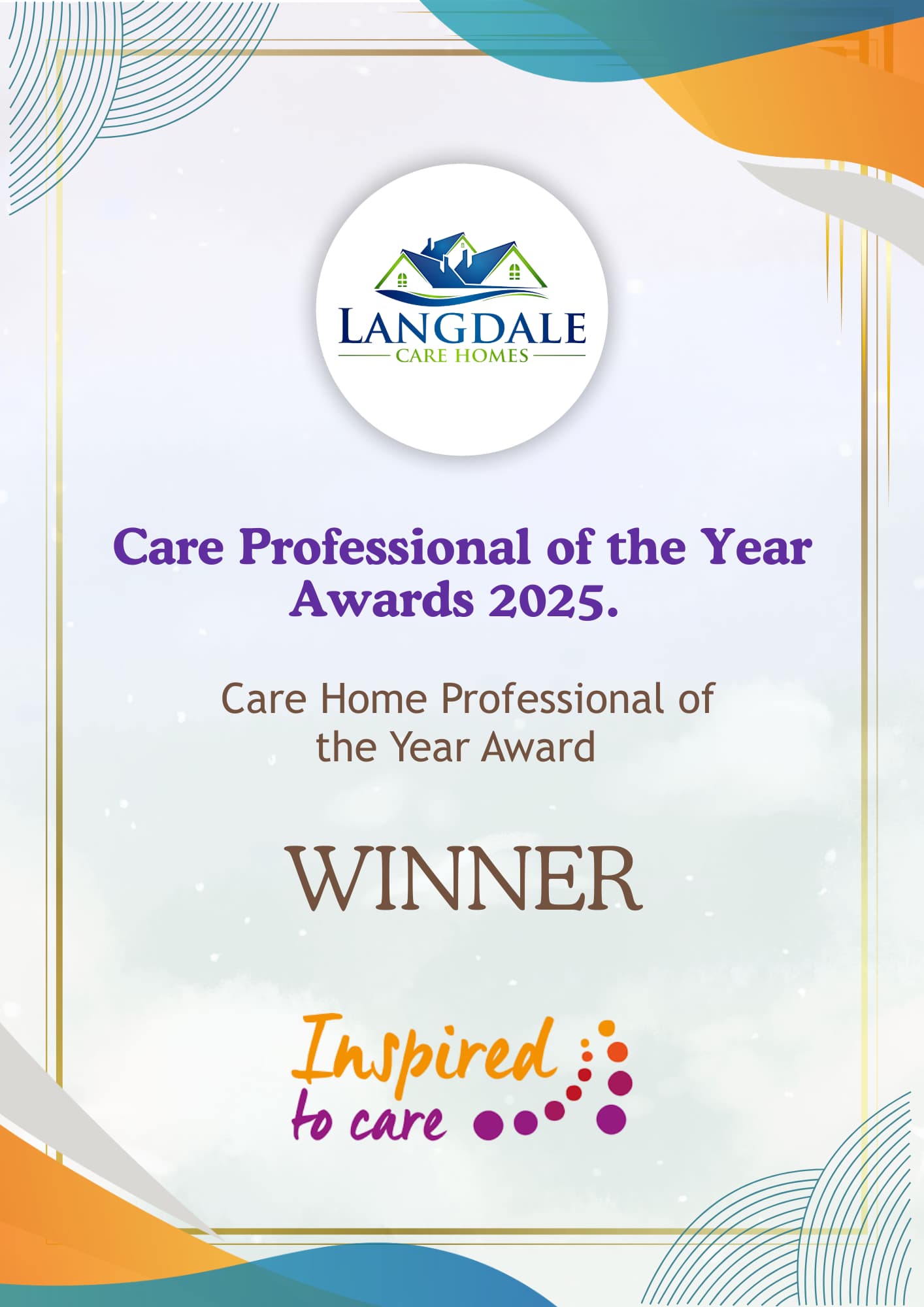 Throughout our history, Langdale Care Homes has been honoured with a wide range of prestigious awards from esteemed organisations in the care sector. These recognitions highlight our consistent track record of delivering outstanding care across all our services, including residential care, dementia care, and nursing care.